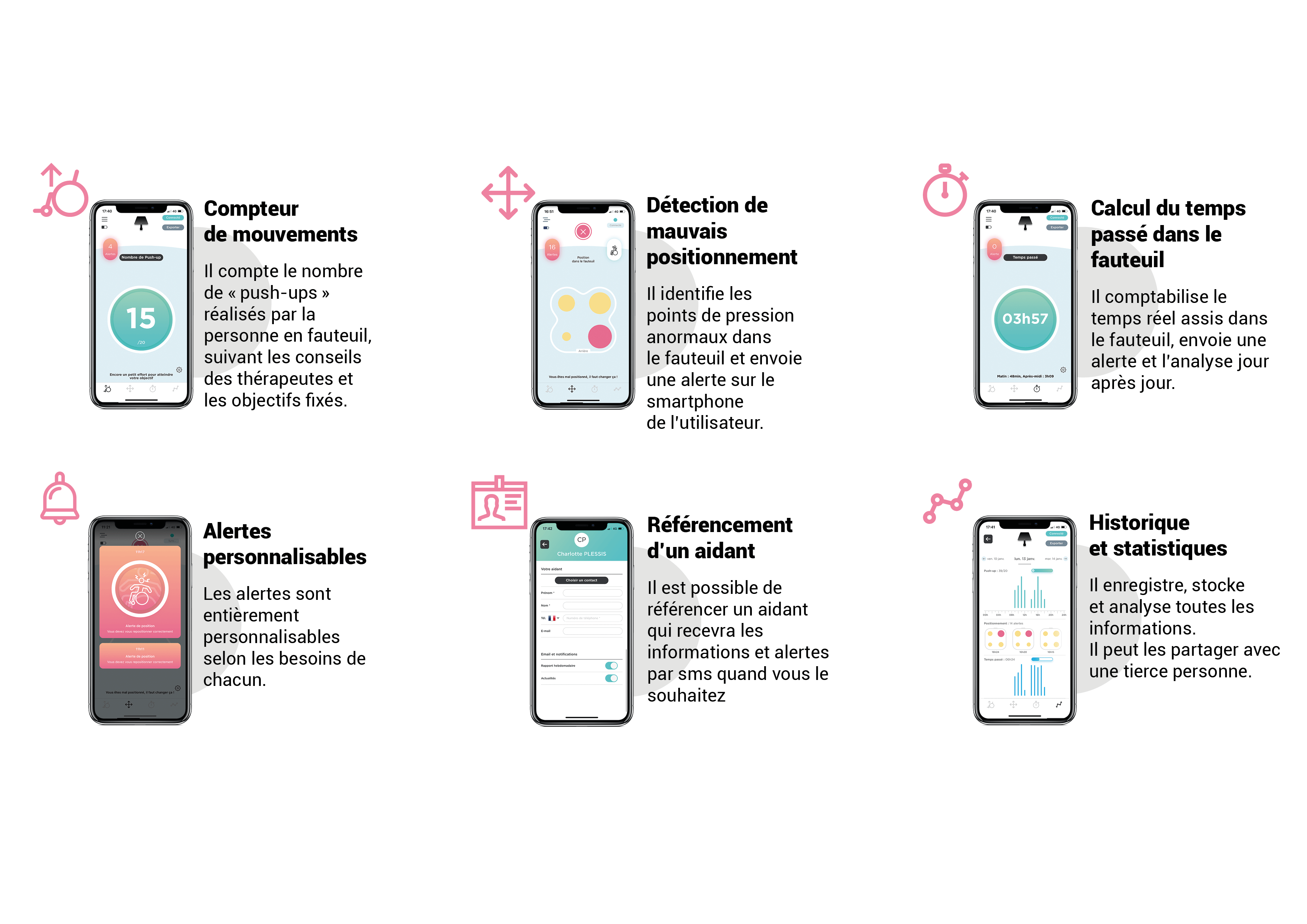 Parce que chaque handicap est unique, Gaspard s’adapte à votre pathologie. Par ailleurs, ce matériel anti escarre composé d’une fine nappe de pression présente des capteurs sobrement placés à l’intérieur de celle-ci. Ces derniers vont ensuite observer votre positionnement, votre activité dans le fauteuil roulant mais également le temps passé. L’ensemble des données sera ensuite disponibles en temps réels. Le moindre déséquilibre sera alors immédiatement perçu, analysé et traité.